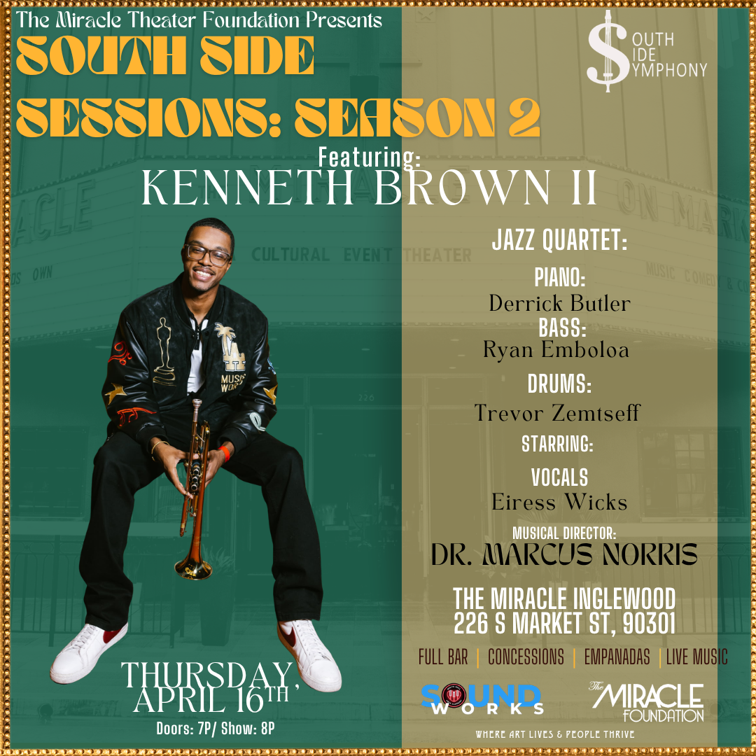 South Side Symphony comes back to The Miracle to present an one-of-a-kind experience, South Side Sessions, showcasing some of LA's highly acclaimed musicians and artists. Conceived by the brilliant Dr. Marcus Norris.